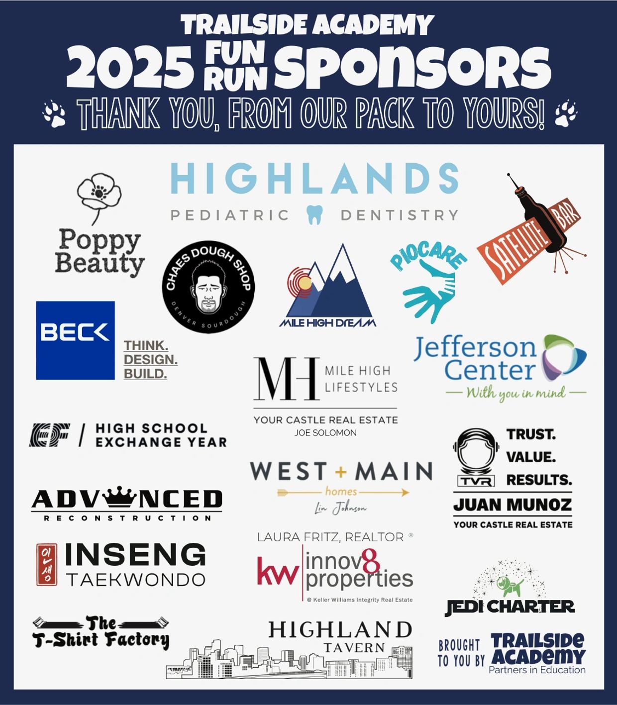 We want to extend our biggest thank you to these businesses for their generosity and partnership! With the sponsorship funds raised, we were able to cover all of the costs associated with operating the Fall Festival, including subsidizing the carnival and activity costs for ALL families who attended, and purchase the student fundraising prizes. Please consider supporting these community partners, and keep an eye on your child’s Friday Folder for the Trailside Partner Directory coming soon!
